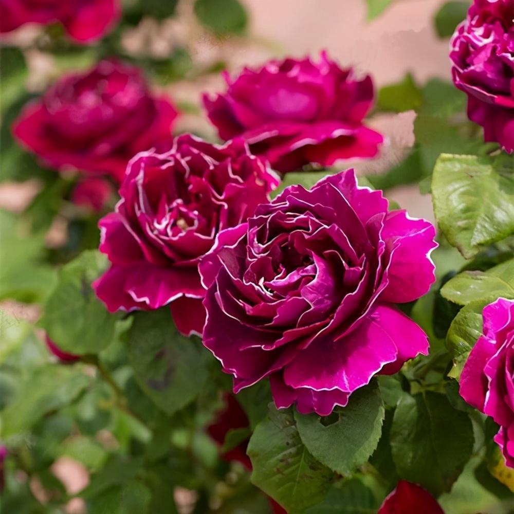 紫袍玉带是一种非常有特色的古典玫瑰,它在开花时会散发香味,花色还十分鲜艳!紫袍玉一般是红色混合着一丝白边,但它的颜色更接近与紫红色或者深紫色,最大特点就是它花瓣的白边,这也为什么叫紫袍玉带的原因。