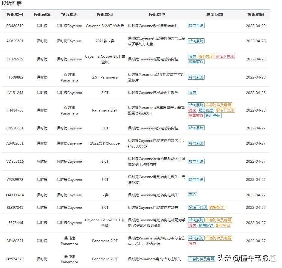 [懂车帝原创 行业] 保时捷“电动转向柱改为手动调节转向柱”事件车主维权进展如何?据中国网5月12日报道,中国网汽车质量投诉平台近期陆续收到高达40余条相关投诉,均指向保时捷品牌存在欺诈消费者的行为。
