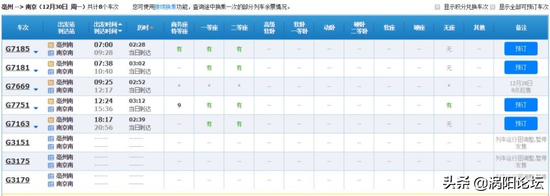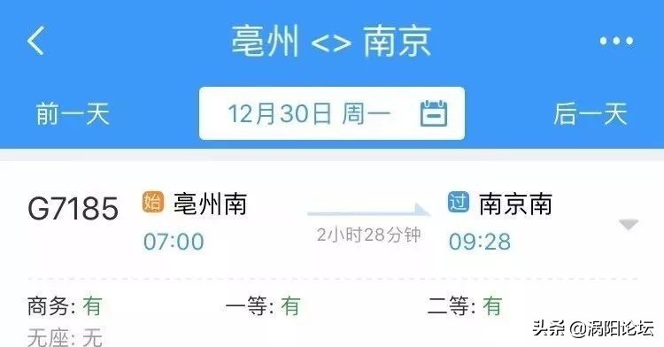 从亳州乘高铁到南京