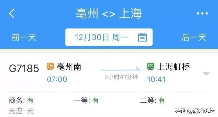 从亳州乘高铁到上海