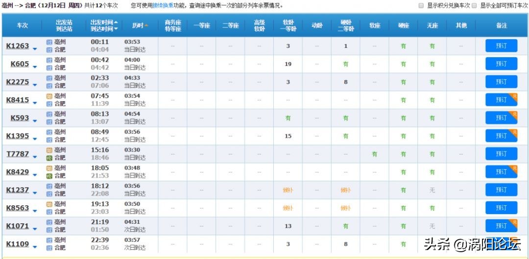 现在每天从亳州火车站