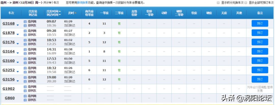 从亳州乘高铁到郑州