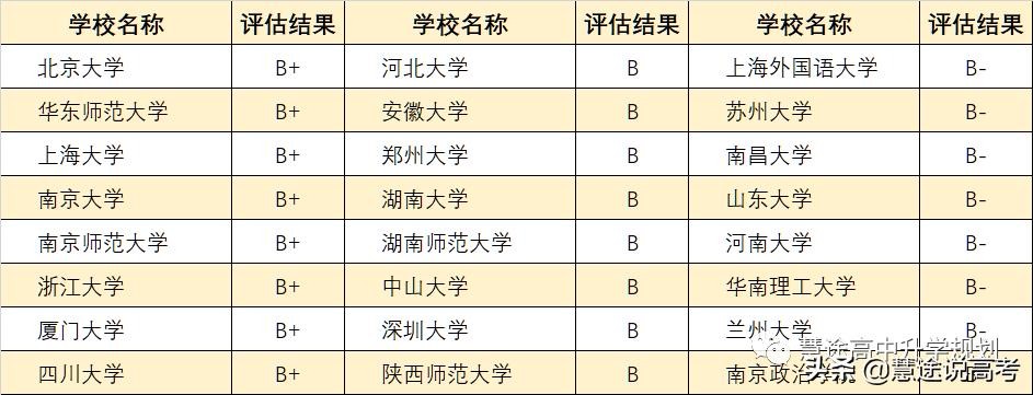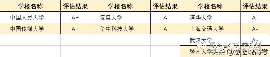 A-级以上的8所院校中,中国传媒大学和暨南大学两所为原211高校,现为“一流学科建设高校”,其余6所院校均为原985高校、现“世界一流大学建设A类高校”。