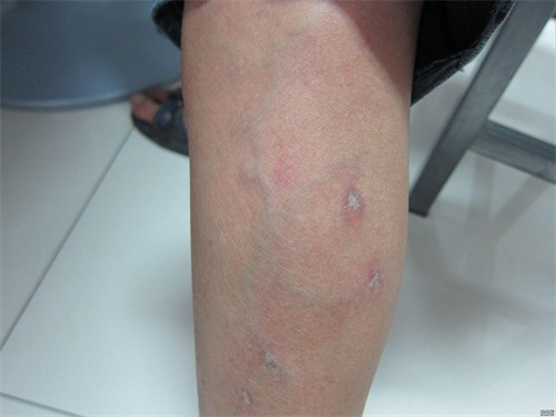 其中结节性红斑最为常见,主要表现为双下肢伸侧的多发红色压痛结节;其次是坏疽性脓皮病,初起为单或多发的红色丘疹或水疱、脓疱,可融合破溃,发展为坏死性溃疡性皮损。