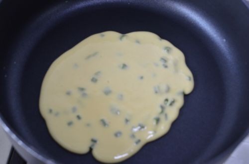 3,锅里放点油,倒入适量的蛋糊摊开成饼,双面都煎好后即可食用。