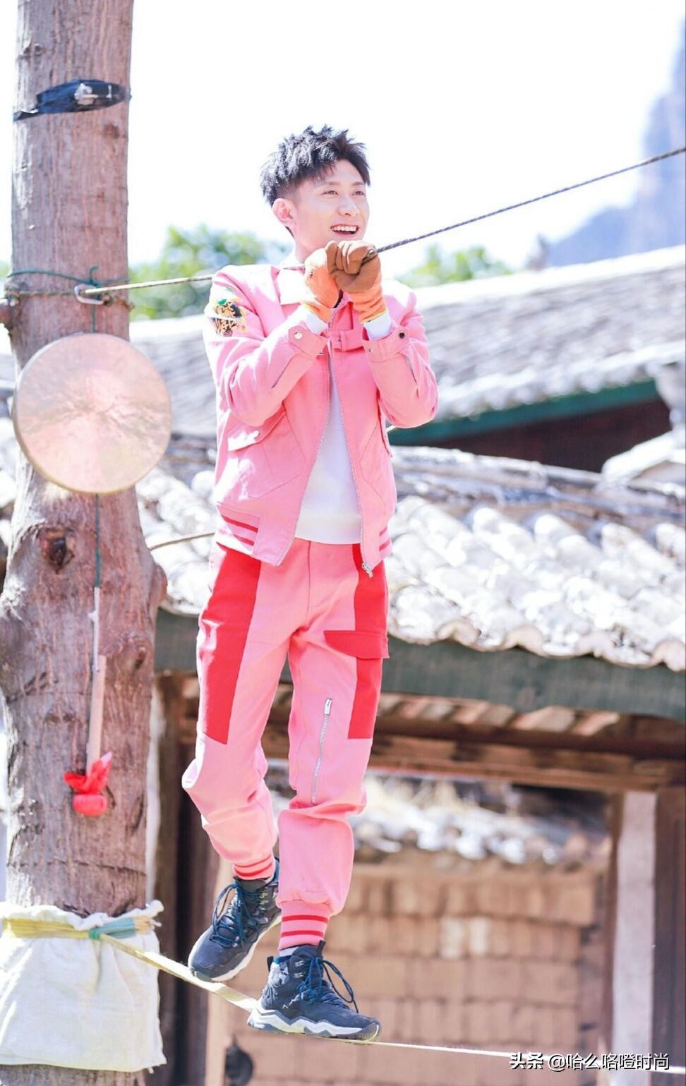 很少见男生穿粉色的衣服,而张一山对这款衣服有他自己不一样的定义。粉色是他这套衣服的主体色,不同于一般的嫩粉色,这个颜色比较偏虾粉色。而红色在这套衣服上的所占比重也比较大,这种同色系的搭配看起来会很顺眼。最独特的地方是裤子,膝盖处有一条嗯,来装饰的外拉链,这些小细节的设计,有许多人格外喜欢。