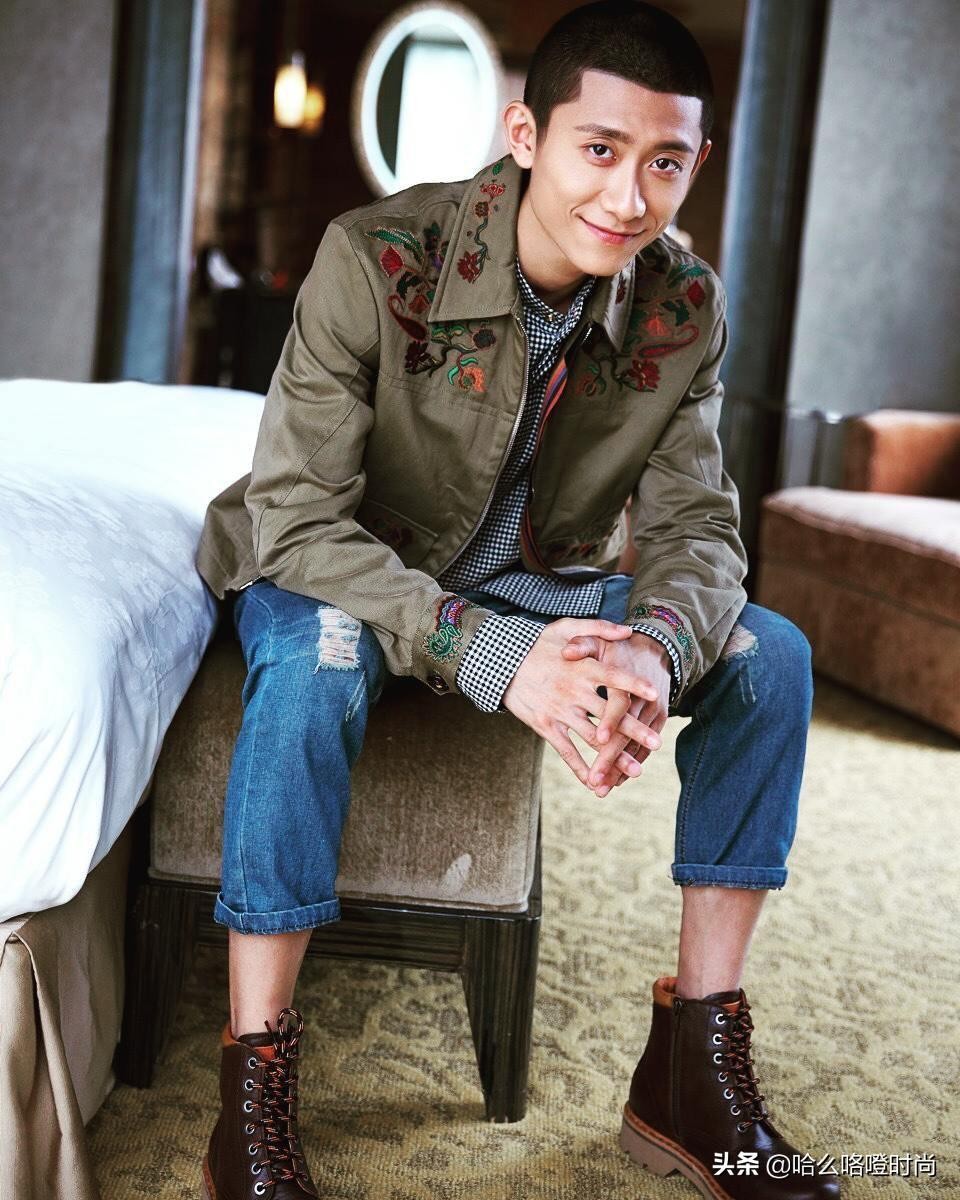 这样的张一山看起来有一股成熟男人的魅力,简直不要太A。墨绿色的刺绣外套比较显眼,墨绿色本身就是一个让人有好感的颜色,比较适合偏成熟的人,而袖口、肩膀、领子处的花朵刺绣让这件衣服看起来更加精致,也给单调的颜色增添了一些搭配。深色的牛仔裤,完美的修饰出张一山的腿型,小腿线条流畅,没有一点赘肉。马丁靴的选择也是一项加分处,哪天学会给人比较酷的感受,一个会穿搭的男生总少不了一双这样的鞋子。
