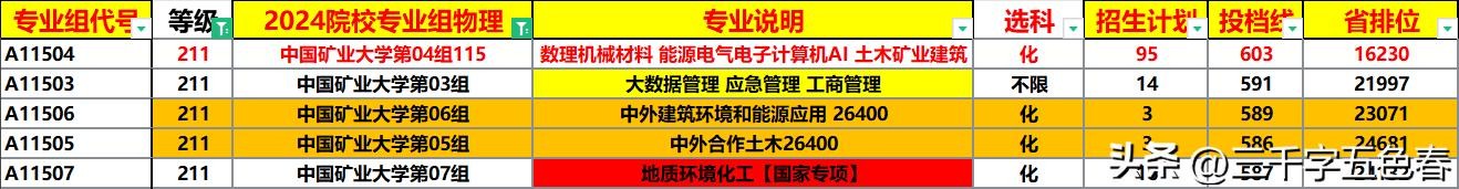 1)中国矿业大学第04组,投档线603分,省排名16230,招录95人