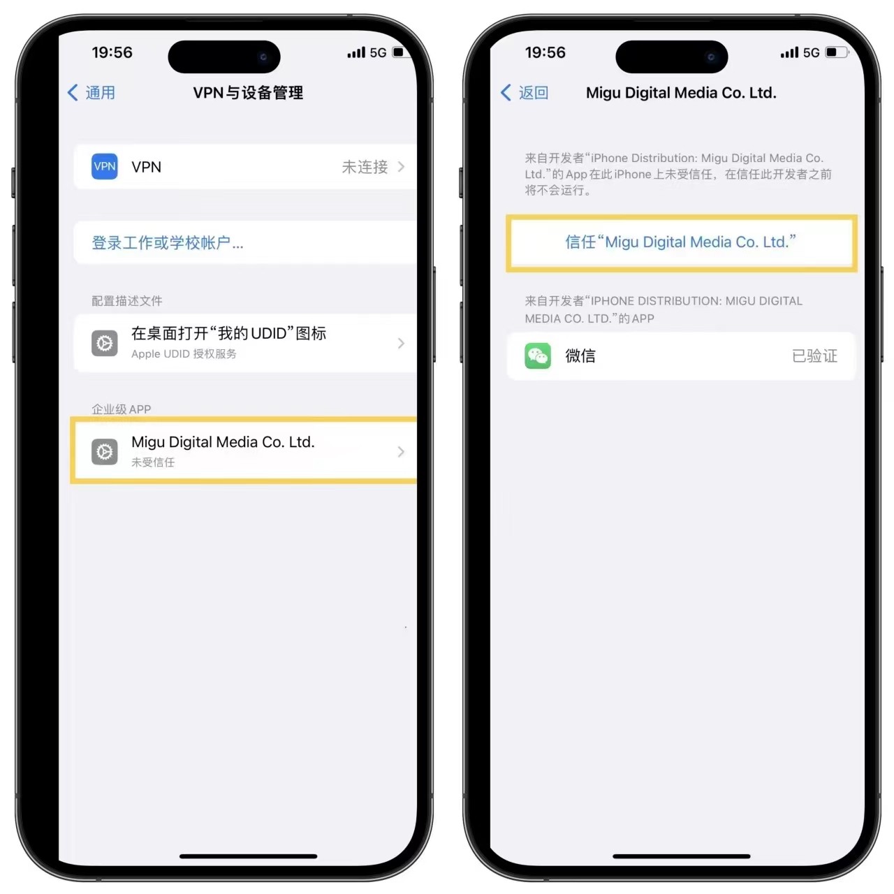 最后找到描述文件,进入后点击信任即可。