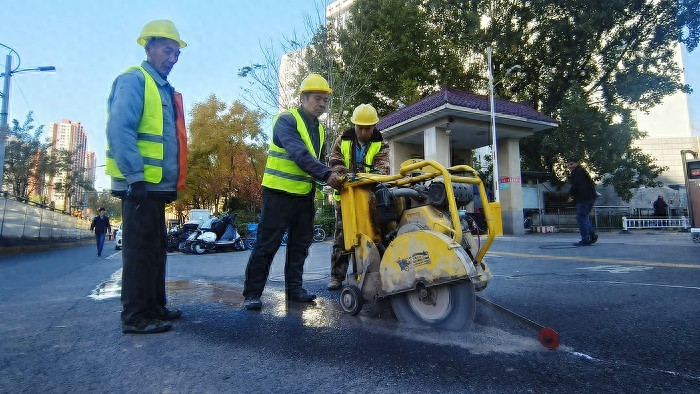 ▲工人在切割路面