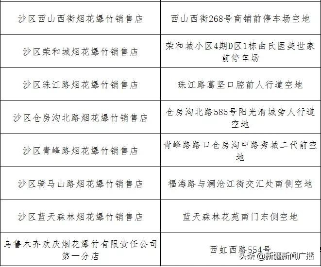 乌鲁木齐春节烟花爆竹开售,具体销售网点看这里
