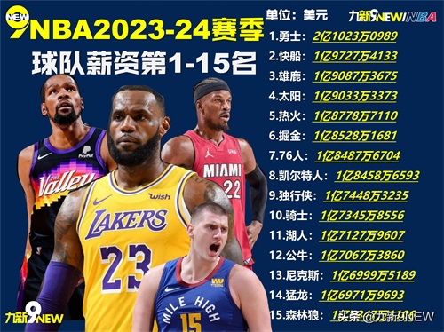 NBA薪资排行前15名:勇士榜首,太阳热火掘金4-6位,湖人第11