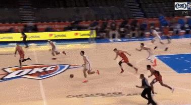 波库的选秀报告简洁地描述了他的特点:“即便身材高大,还是能处理球和传出好球,而他还在长高,但他控球、投篮、快攻的技术没有因此被削弱。这样的奇特技能包组合让他成为了这届选秀中上限最高的球员之一。”“组织”属性向来是前南球员一脉相承的优良传统,这与他们的篮球系统从小着重观察、跑动、传球有密切关系,这一篮球系统量产基本功扎实的传球手,而兼备天马行空想象力的个中翘楚则因此迸发出奇妙的化学反应,成为我们日后看到的球场魔术师。你可以列举出许多名字:迪瓦茨、佩贾、库科奇、约基奇、东契奇,还有今天的波库……波库说他的偶像是托尼-库科奇,你也的确能在波库的比赛看到库科奇最为人熟知的“组织”属性。波库本赛季有21.2%的进攻方式是持球发起挡拆,虽然得分效率接近联盟垫底水平,但当他作为挡拆中的传球者时,球队平均每回合得分1.196,超越了全联盟75%的球员,这是可以和哈登、东契奇等人相媲美的数据。正因如此,雷霆主帅戴格诺特赋予了他充分的处理球自由度。