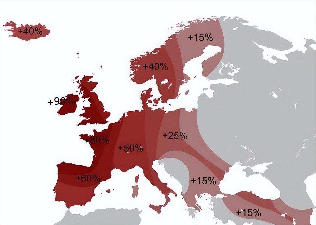基因学研究,凯尔特人在欧洲各地区占比