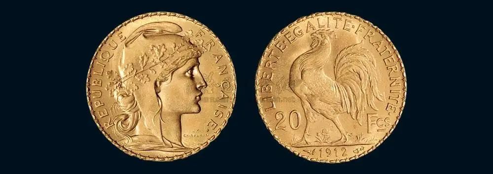 1899年,法国政府为了鼓舞民心,发行了20金法郎的货币,背面就是高卢雄鸡。