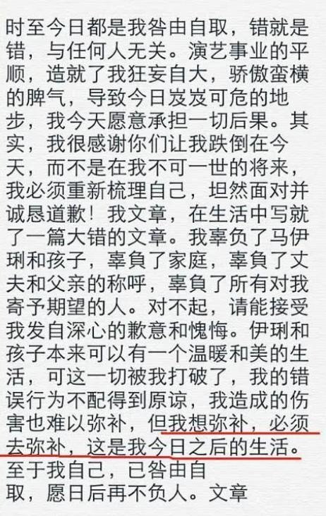 出事以后马伊俐发文喊话文章:且行且珍惜。但当时她与文章已经生育了一个孩子,并且还怀着孕。