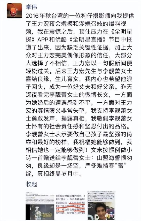 卓伟表示,他早在2016年就已经爆料过王力宏嫖娼招妓的事情。