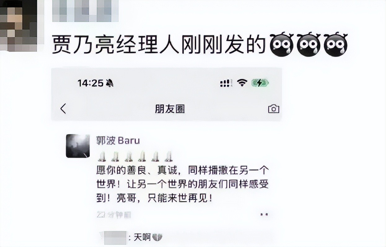 原来是贾乃亮的经纪人在朋友圈哀悼说:“亮哥,只能来世再见”,这才让大家产生了误会。