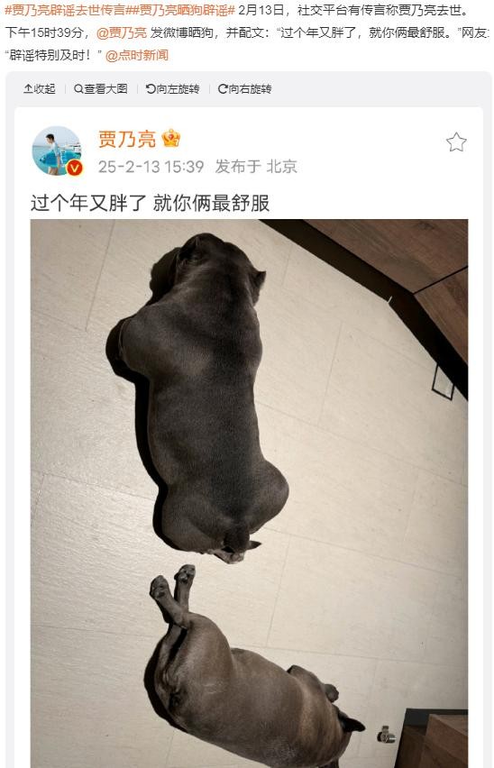 2月13日,关于贾乃亮晒狗辟谣去世的话题突然上了热搜。