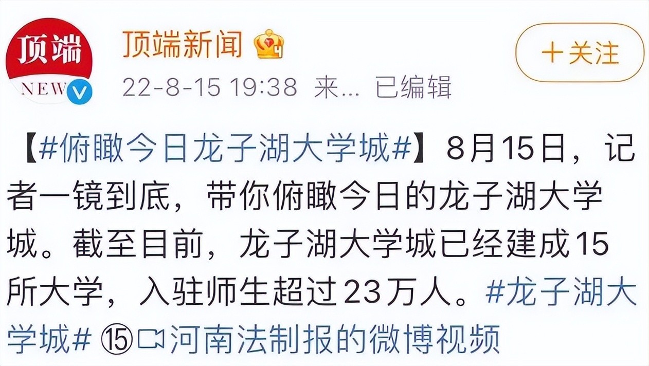 最近,“河南龙子湖大学城”上了热搜。2011年央视新闻报道了河南龙子湖大学城,认为龙子湖大学城疑似占用耕地,违规用地。