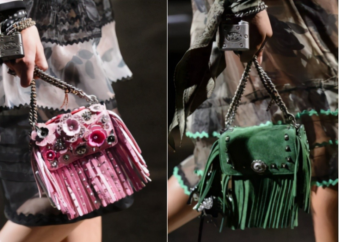 蔻驰的贝壳包出镜率还是蛮高的,荔枝纹理的皮革还是很有特点的,像上面这样的糖果色亮眼设计,看了就馋。