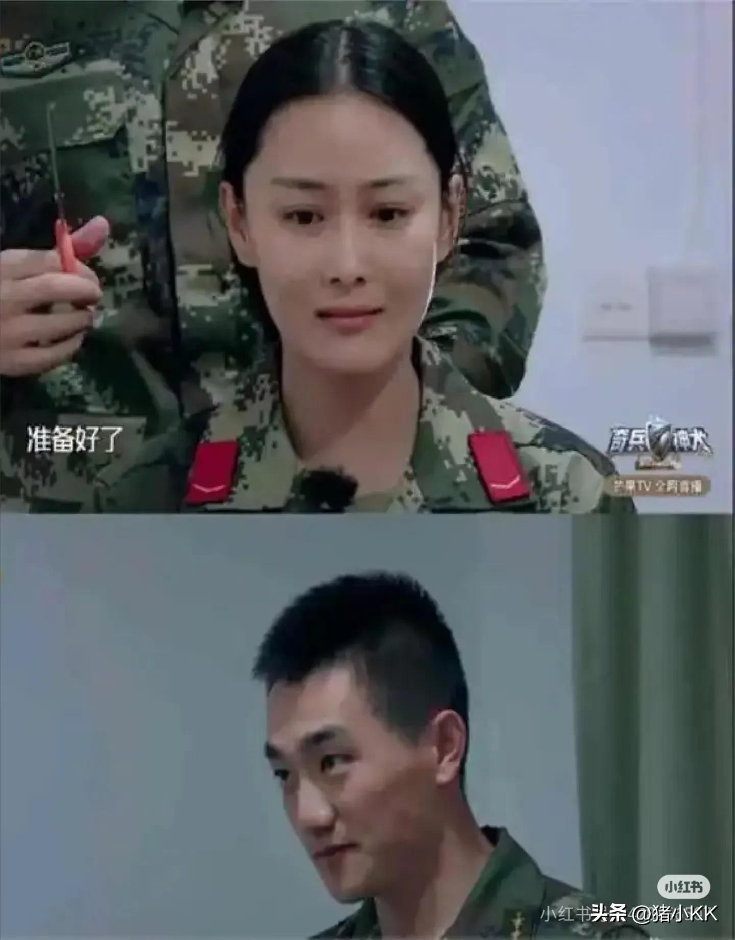 她和何捷的定情综艺《神犬奇兵》简直就是小说照进了现实,美丽善良的女明星和严酷又帅气的军官组合,在节目现场军官现场给女明星剪头发,小说都不敢这么写。