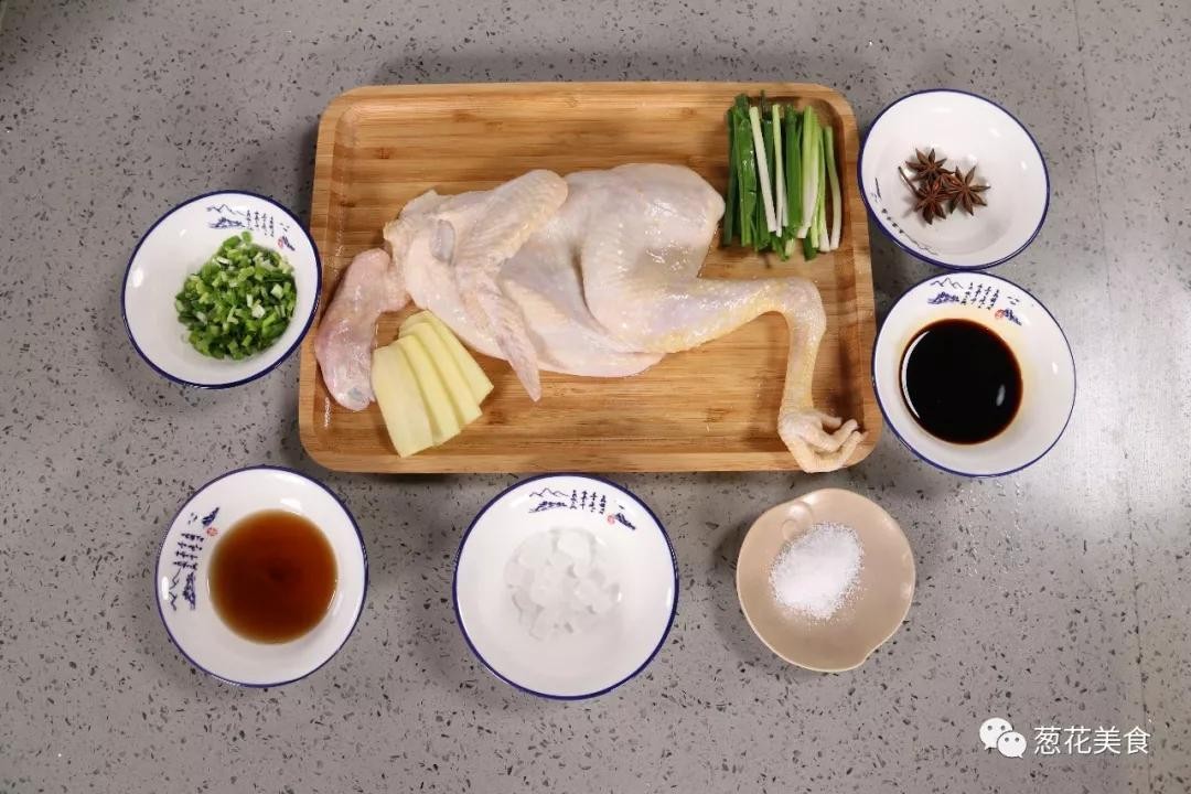 半只鸡、冰糖、姜片、葱段、八角、料酒、盐、老抽、葱花