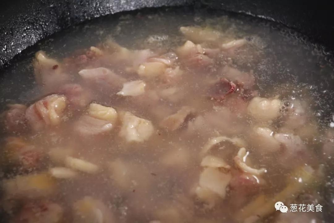 5. 放入姜片、葱段、八角、炒匀倒水没过食材。