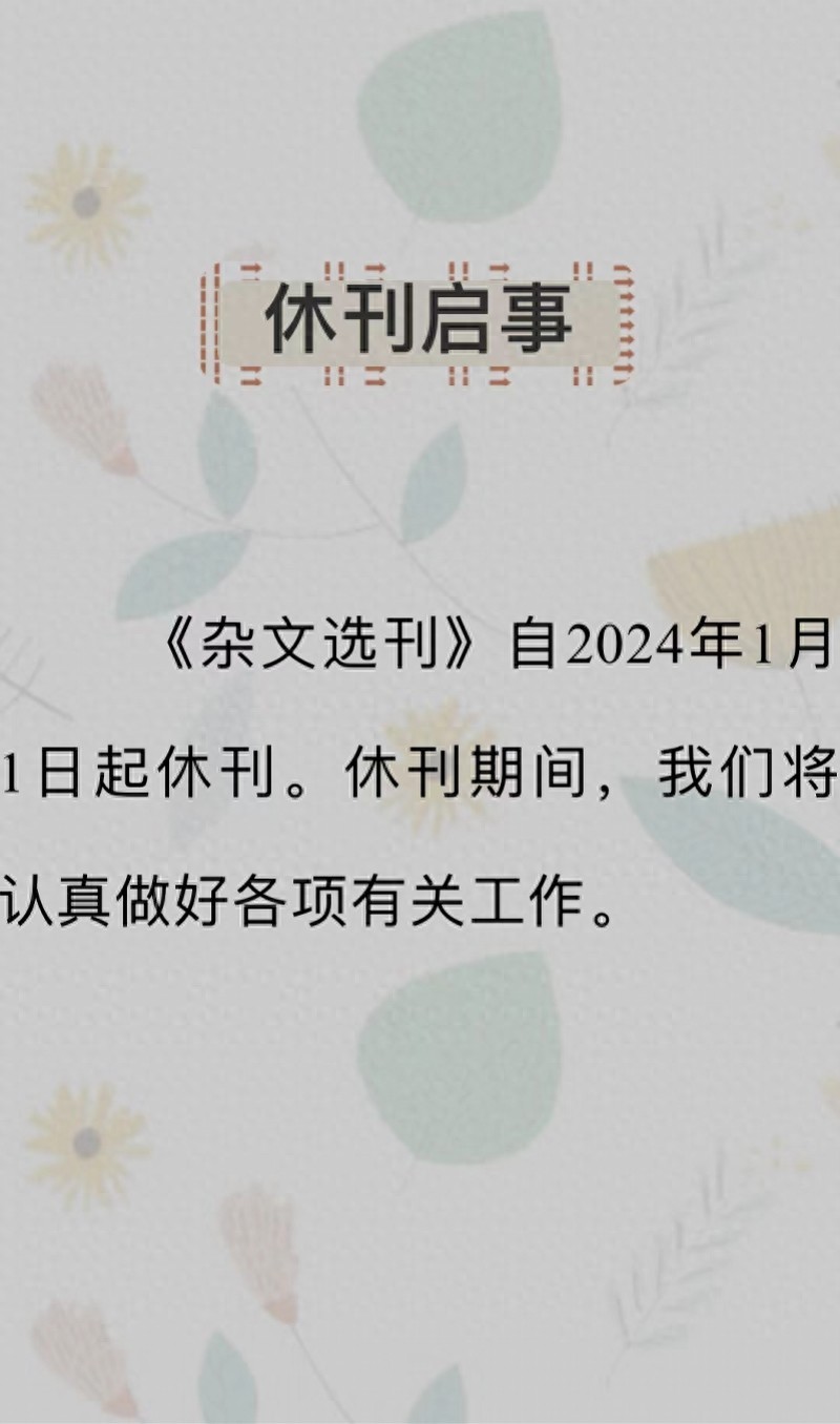 杂文选刊编辑部发布休刊启事。