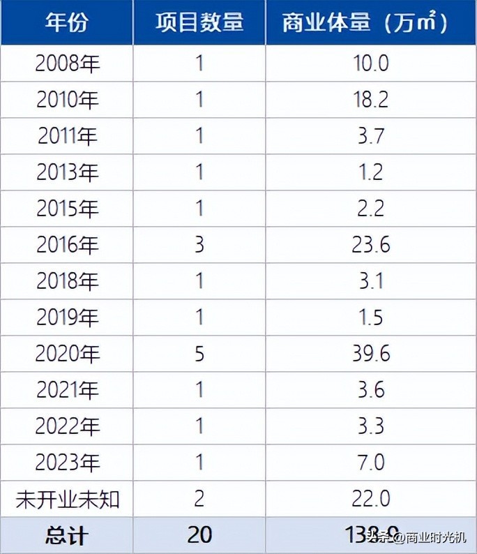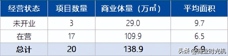 截止至2023年9月,广州富力集团旗下在营的购物中心共17座,商业体量达138.9万㎡,平均商业体量为6.5万㎡/座。待开业商业为3座,商业体量共计29万㎡,平均商业面积超过历史水平,为9.7万㎡/座(但根据富力集团的现状,有一定延期开业的可能性)。届时,富力集团在营的购物中心将达到20座,商业体量接近140万㎡(统计来源于企业官网、媒体新闻报道、及其他公开资料,非完全统计,仅供参考)。