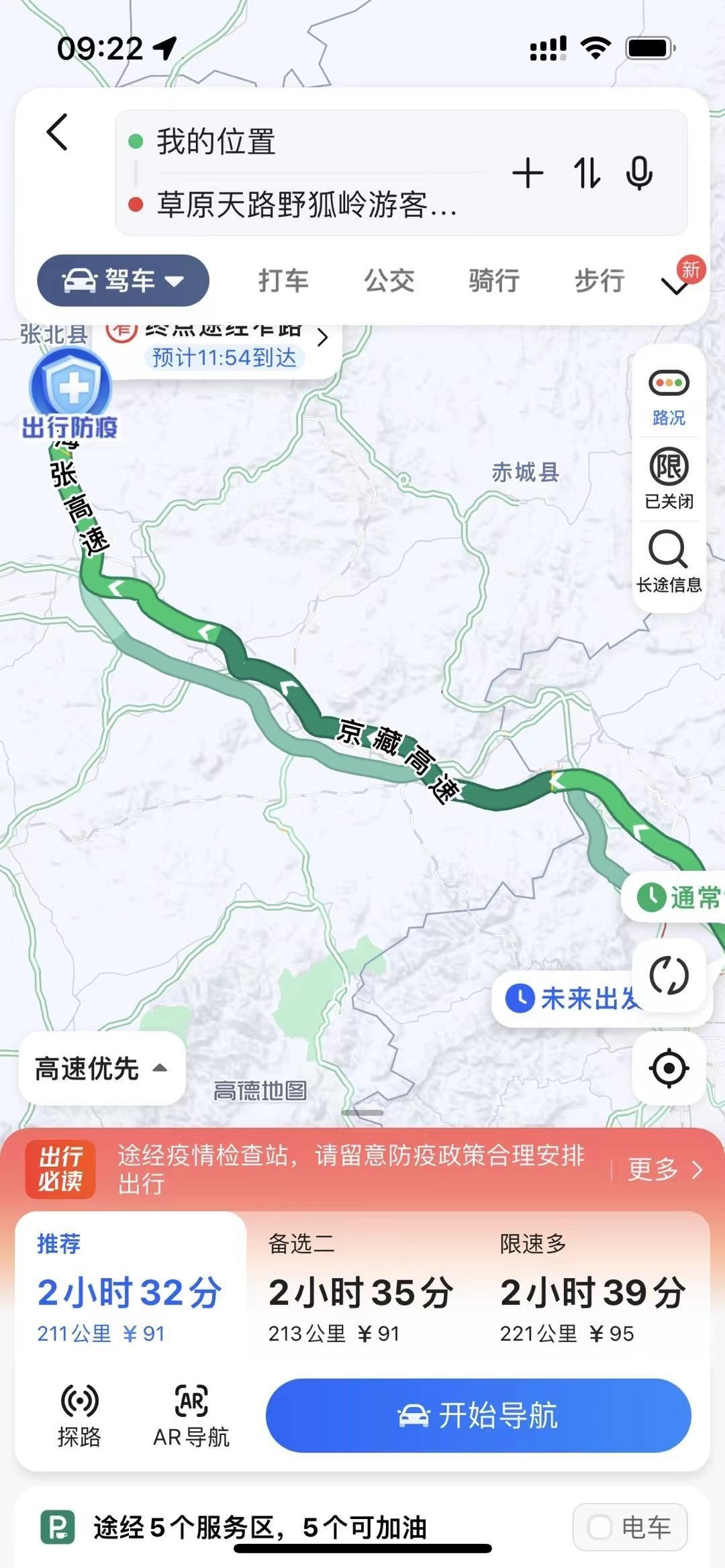 上午9点多从西三旗出发,做好核酸加油。 拿卡报车牌号上京藏高速。