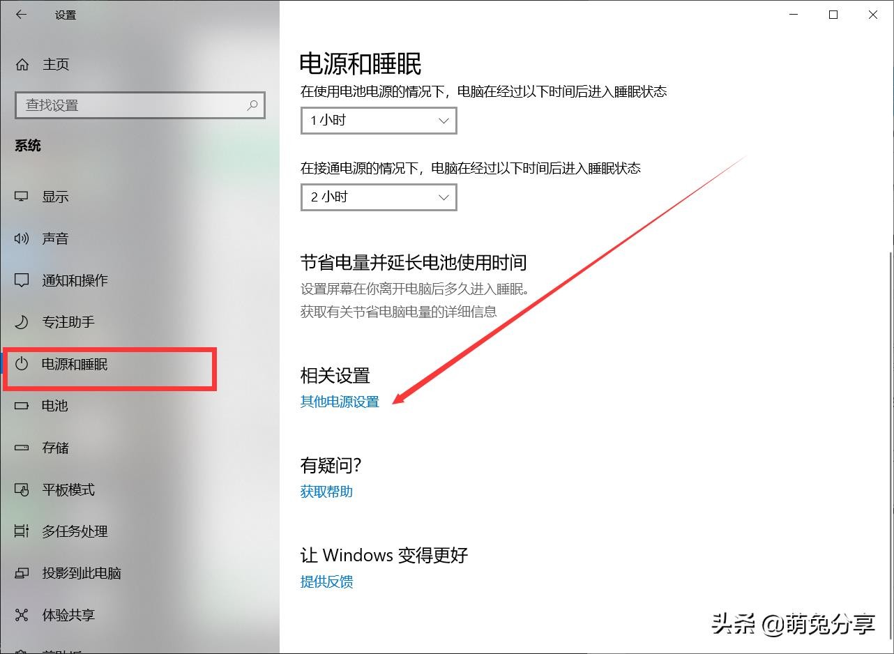 3.选择[电源和睡眠]然后选择[其他电源设置]