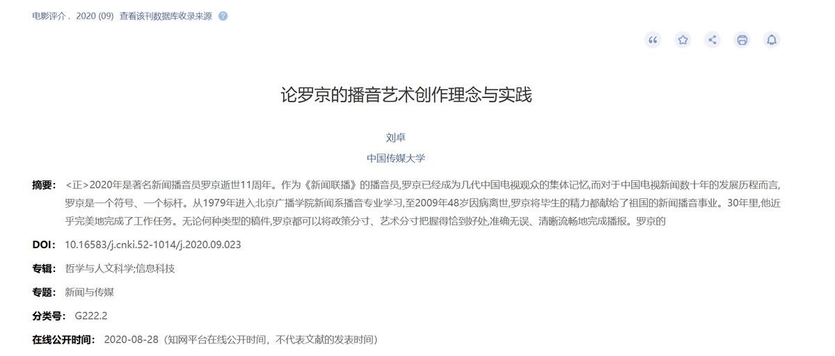 [1]刘卓.论罗京的播音艺术创作理念与实践[J].电影评介,2020,(09)