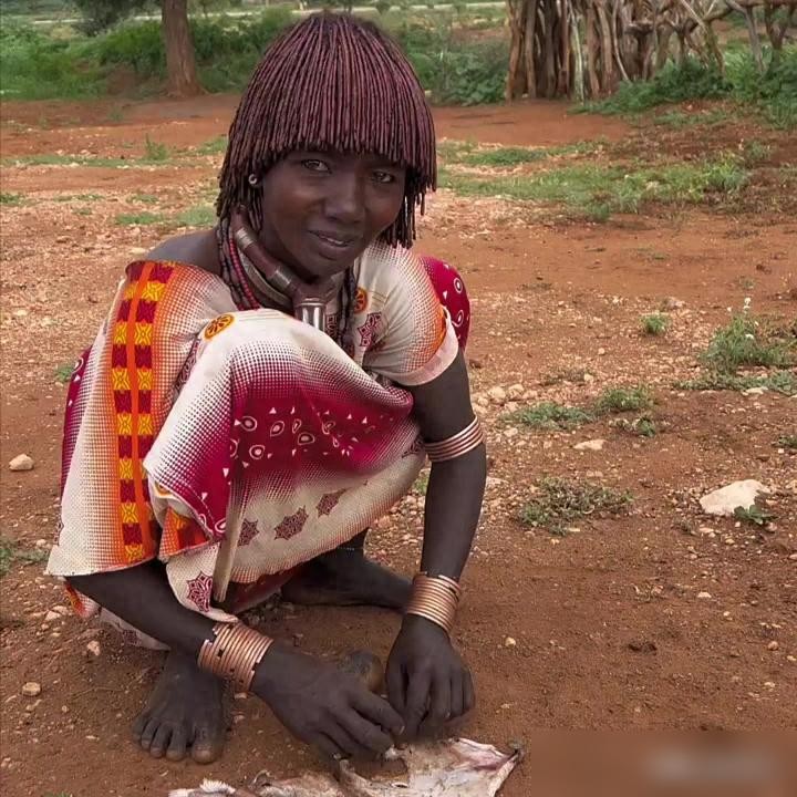 在这个部落中,女性从来没有洗过澡,红泥族的女性一般是将生活中的油污,涂抹在皮肤上。