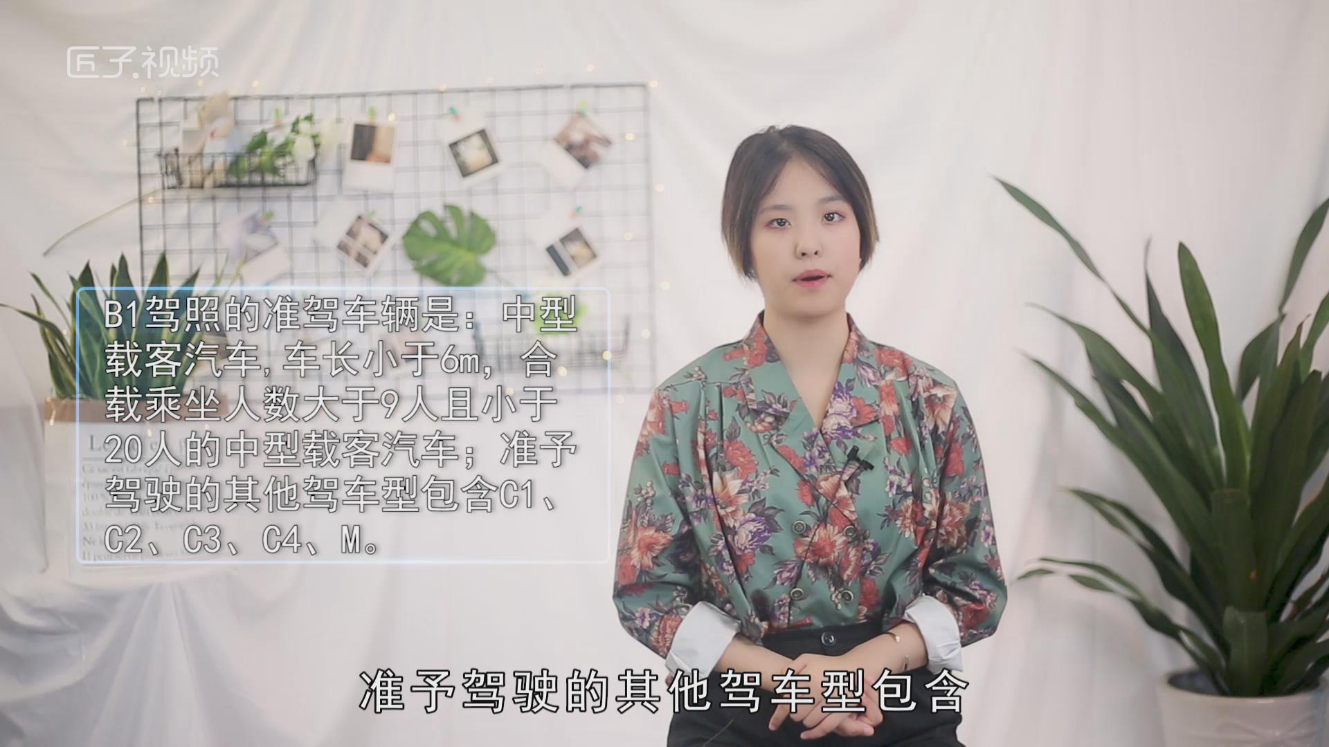 B1驾照的准驾车辆是:中型载客汽车,车长小于6m,合载乘坐人数大于9人且小于20人的中型载客汽车;准予驾驶的其他驾车型包含C1、C2、C3、C4、M。B1驾照的准驾车型中并不包括B2,意思就是不能开货车。