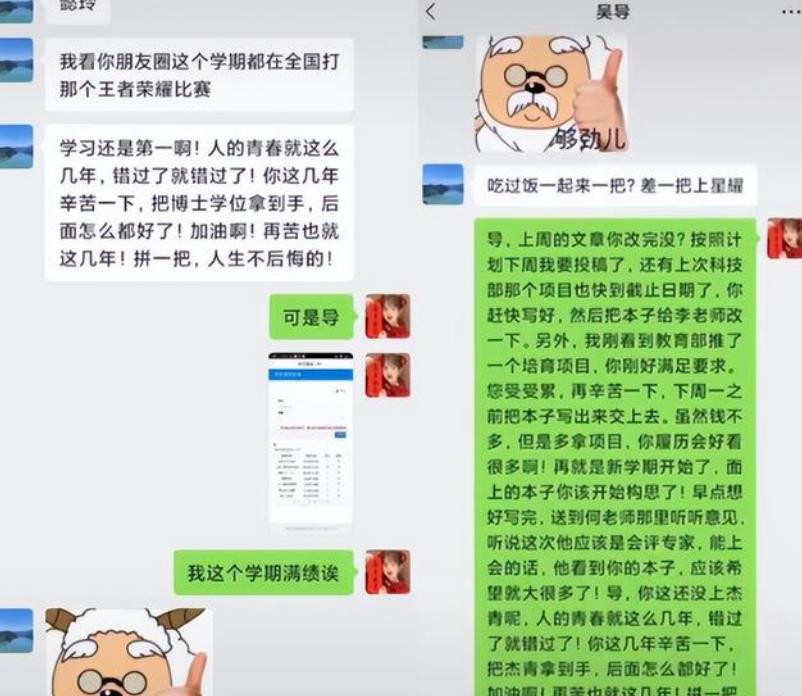 导师因为看到她在朋友圈经常发关于游戏的东西,便害怕她耽误了学习,便教导她一下,没有想到她拿出了满绩的成绩单,直接打了导师的脸,导师表示,你还是带我上星耀吧。