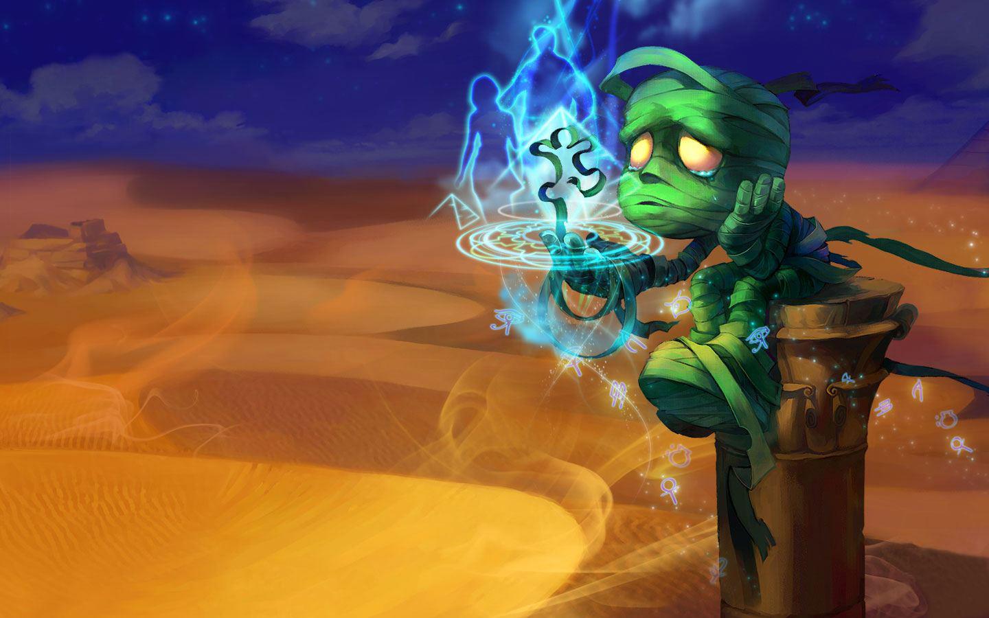哈啰大家好,这里是新讯电竞。说到英雄联盟这款游戏,相信大家都不陌生,因为这款游戏已经陪伴了我们近十个年头了。而在这十年间英雄联盟从一个不知名的新游戏,经过设计师的不断完善,如今已经变成了电竞行业的领头游戏了,而拳头公司也深知要想让游戏保持生命力,不但要不断的完善玩法,抵制外挂,更要让游戏有完善的背景故事,所以拳头公司做出了英雄联盟宇宙,为每一位英雄,每一个势力,都谱写了专门的背景故事,从而刻画了一个个,个性鲜活,有血有肉的人物,今天小编就给大家讲一讲殇之木乃伊-阿木木有趣的故事。