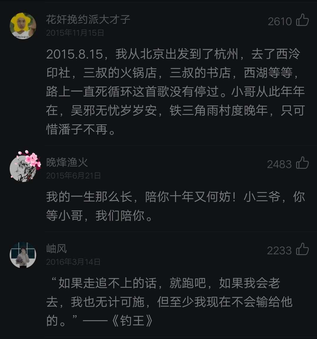 今天推荐一首歌《再拾年》,《再拾年》是《盗墓笔记》中的同人歌曲,原曲是《虹之间》,曾出现在《爱情公寓》中出现。南派三叔买下版权后对其进行重新填词,命名为《再拾年》,现摘抄歌词如下: