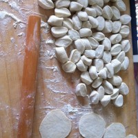 4. 将面切好擀成薄皮。