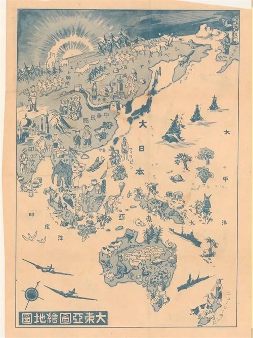 通过一幅日本人所做的《大东亚图绘地图》,可以看看,所谓的大日本东亚共荣圈包括了哪些范围?在日本人眼中,中国又究竟是个什么样子?