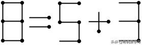 很容易想到3、5、8有一个等式关系:3+5=8。对照例题数字的位置可以变为8=5+3,由此联想将加法变为等号,等号变为加法,这样改变确实也只需要移动两根火柴棒,等式成立。