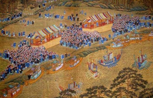 至于乾隆,南巡的意义则不完全相同。乾隆在位时期,清朝的财政状况已经比康熙时好得多。乾隆的南巡更多的是带有一种“帝王自豪”的成分,仿佛是为了显示清朝的盛大与国力的强盛。这不仅仅是对康熙的尊重,更是乾隆想要让百姓感受到他自身治国有方,江山稳固的信心。乾隆的南巡并不如康熙那样集中在水利与民生问题上,而更多表现为一场壮丽的皇家巡游,兼顾了政治宣传和帝王形象的塑造。