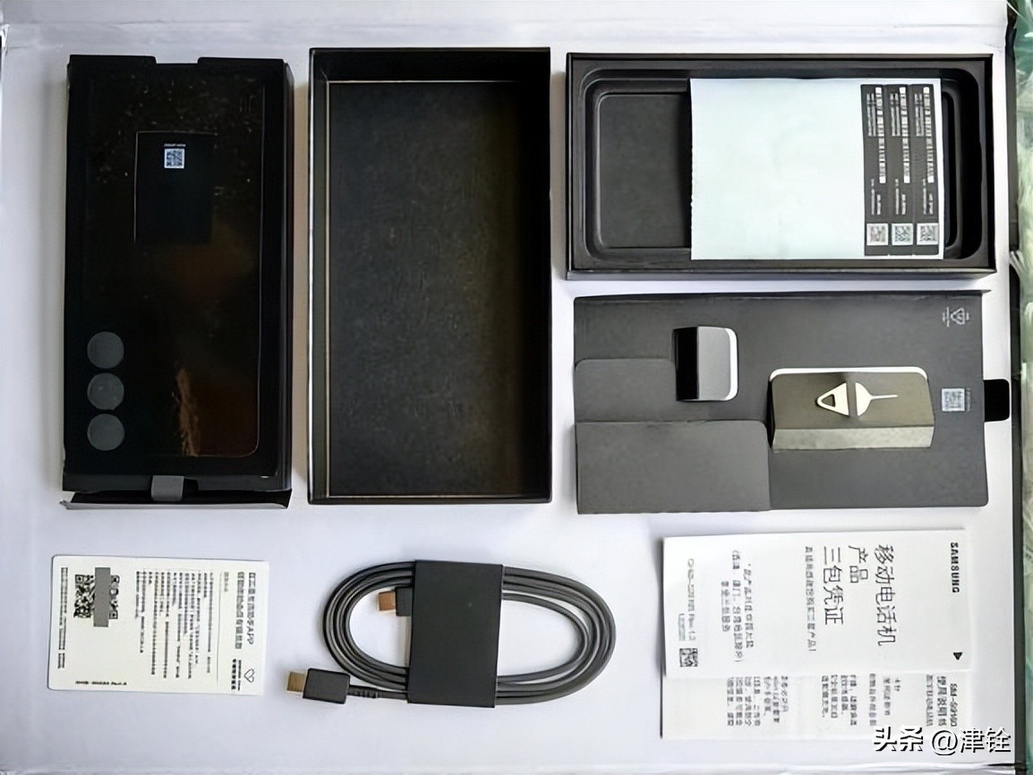 S23+的包装不能说是简单,只能说是极致轻薄,快递来的时候我都没意识到里面是一部手机。配件只有一根usb c-c数据线、取卡针、说明书;当然对于国际大厂三星,环保的决心当然也是要对标苹果的,所以理所当然的既没有充电插头、也没有附送保护套及屏幕贴膜,环保到家了!