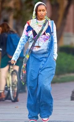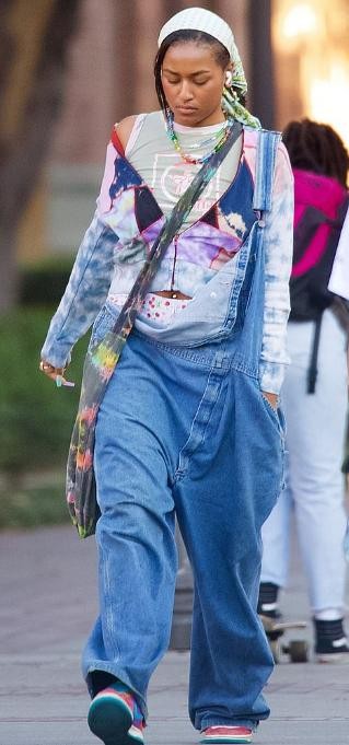 这装束如此嘻哈,真的非常有异域风情,这色彩如此多变、华丽,超有非洲风格。而且,萨莎的裤子是超肥大的那种,轻松实现了叠穿的效果。