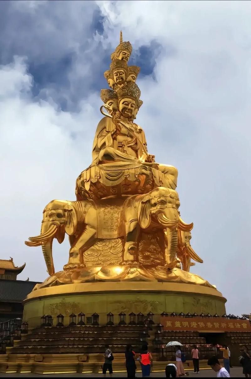 普贤菩萨的名字,"普"是遍一切处,"贤"是最妙善义。他代表着菩萨的实践,有著名的"十大愿王":礼敬诸佛、称赞如来、广修供养等。