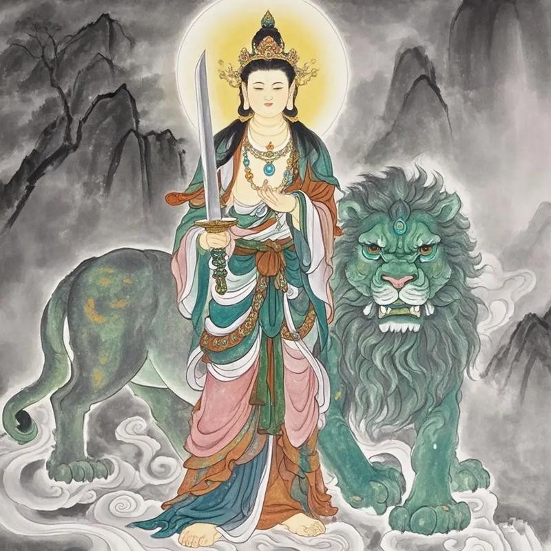 正如文殊菩萨手中的智慧宝剑,能斩断世间一切烦恼,指引我们以智慧之光照亮人生道路。在修行的路上,愿我们既有文殊般的智慧,也有观音般的慈悲,普贤般的行愿,和地藏般的决心。
