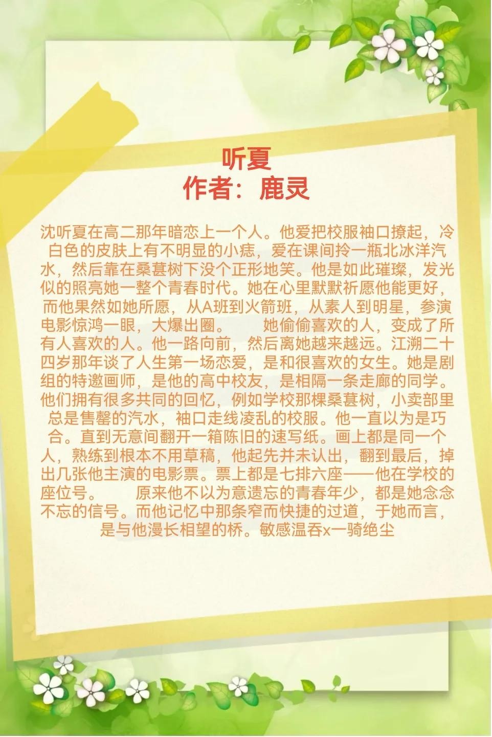5、《听夏》作者:鹿灵