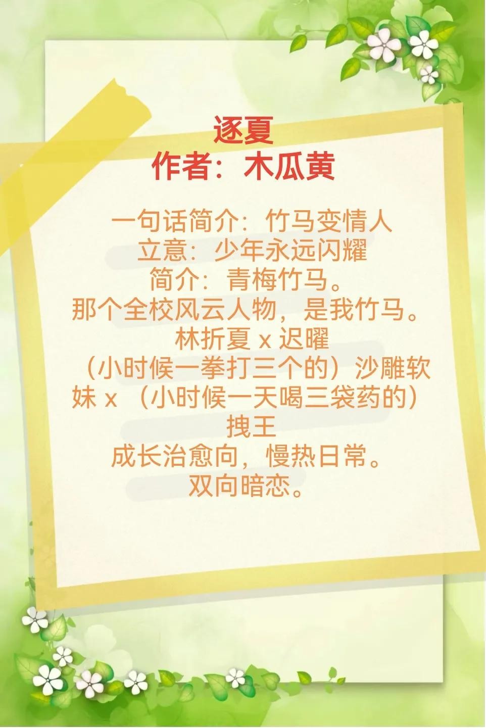 4、《逐夏》作者:木瓜黄