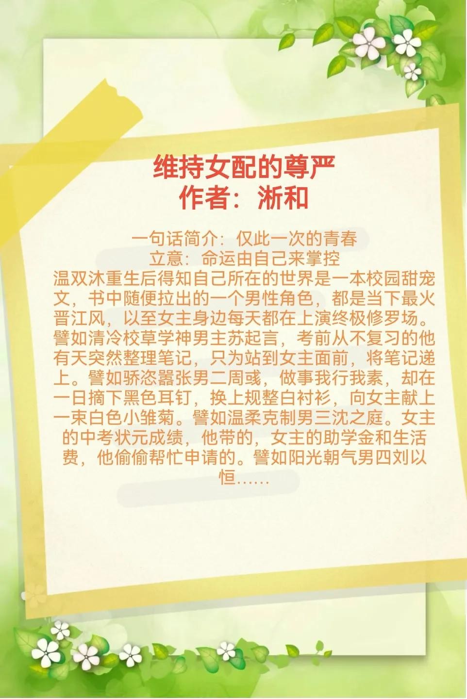 书评:一本令人惊喜的校园重生文,温双沐,原本是原书中的女配,她与原男主是青梅竹马,但一直未能得到他的回应。在出车祸重生后,她决定勇敢追求所爱,她的行为虽然引起了一些不适,但她的坚持和勇气让人钦佩。在与系统的互动中,温双沐逐渐觉醒,开始关注自己的内心和情感,而不是仅仅围绕原男女主转。