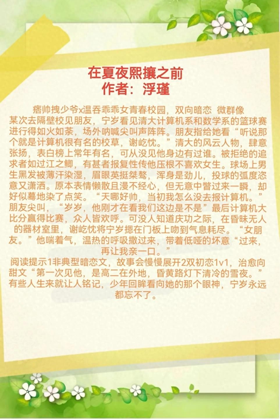 1、《在夏夜熙攘之前》作者:浮瑾